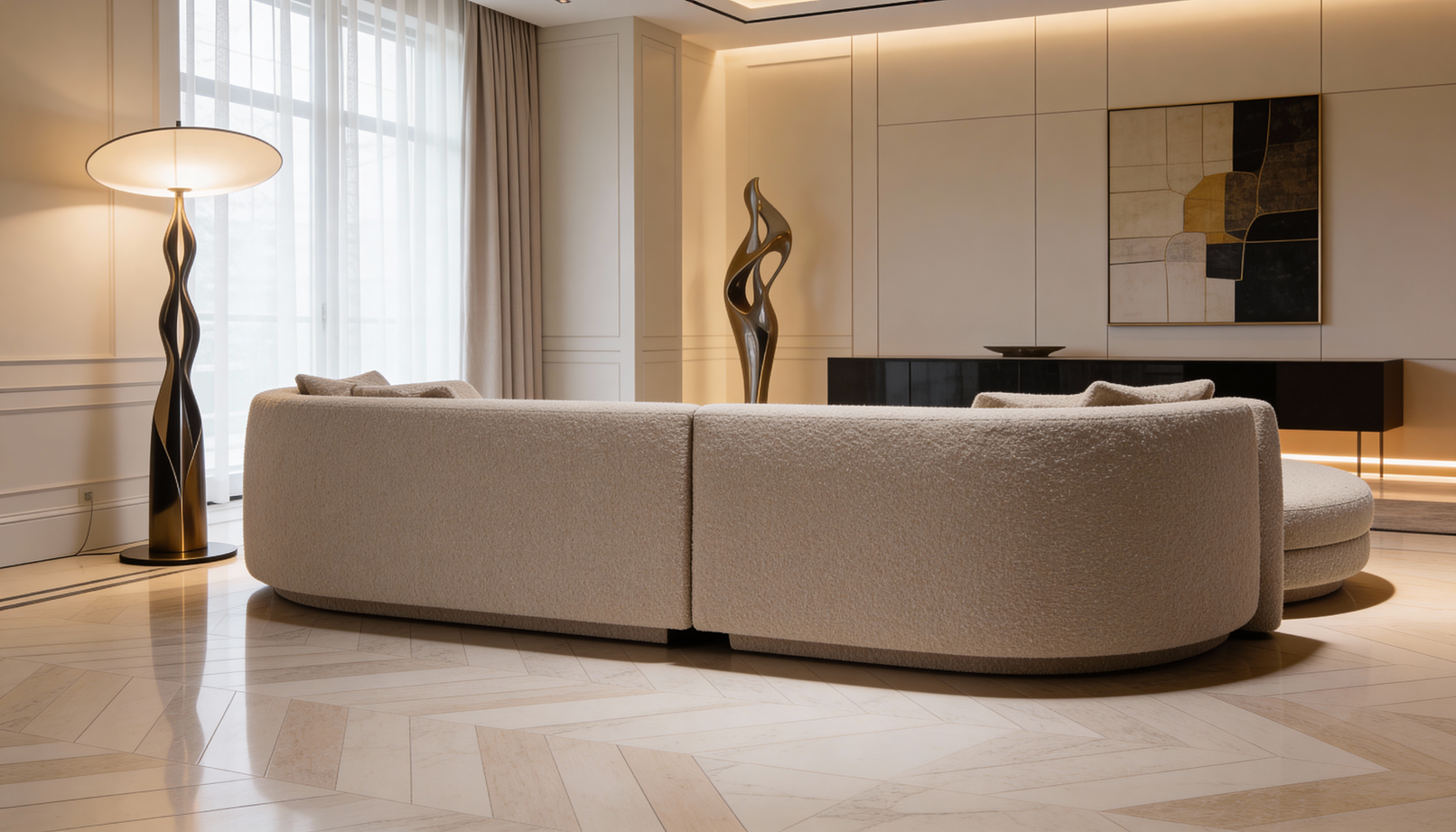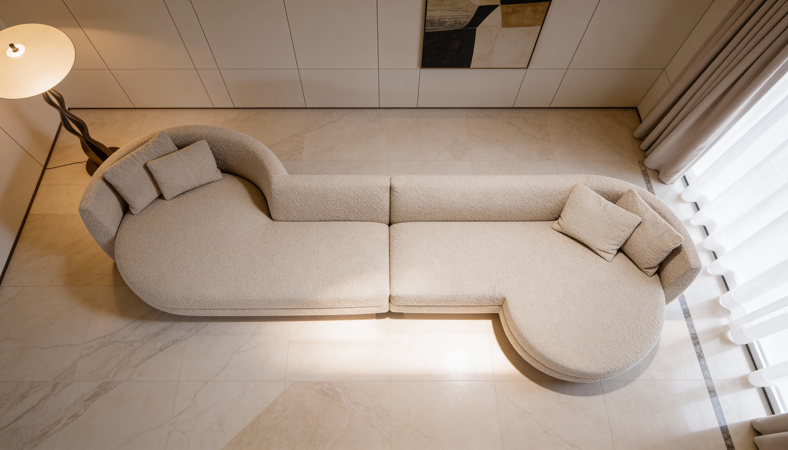 This organic curved sofa becomes a statement without excess, grounded yet expressive. Thoughtfully crafted for comfort and visual harmony, Kutila transforms interiors with effortless grace. From the forest into the forest.