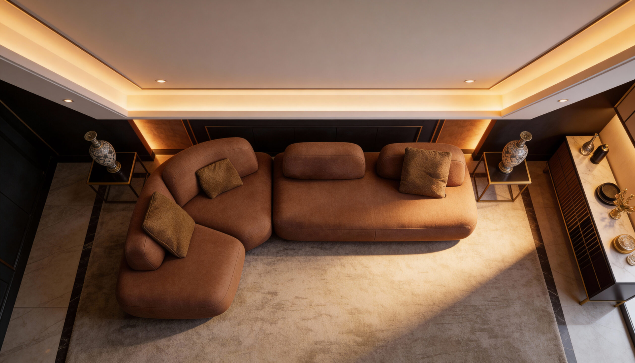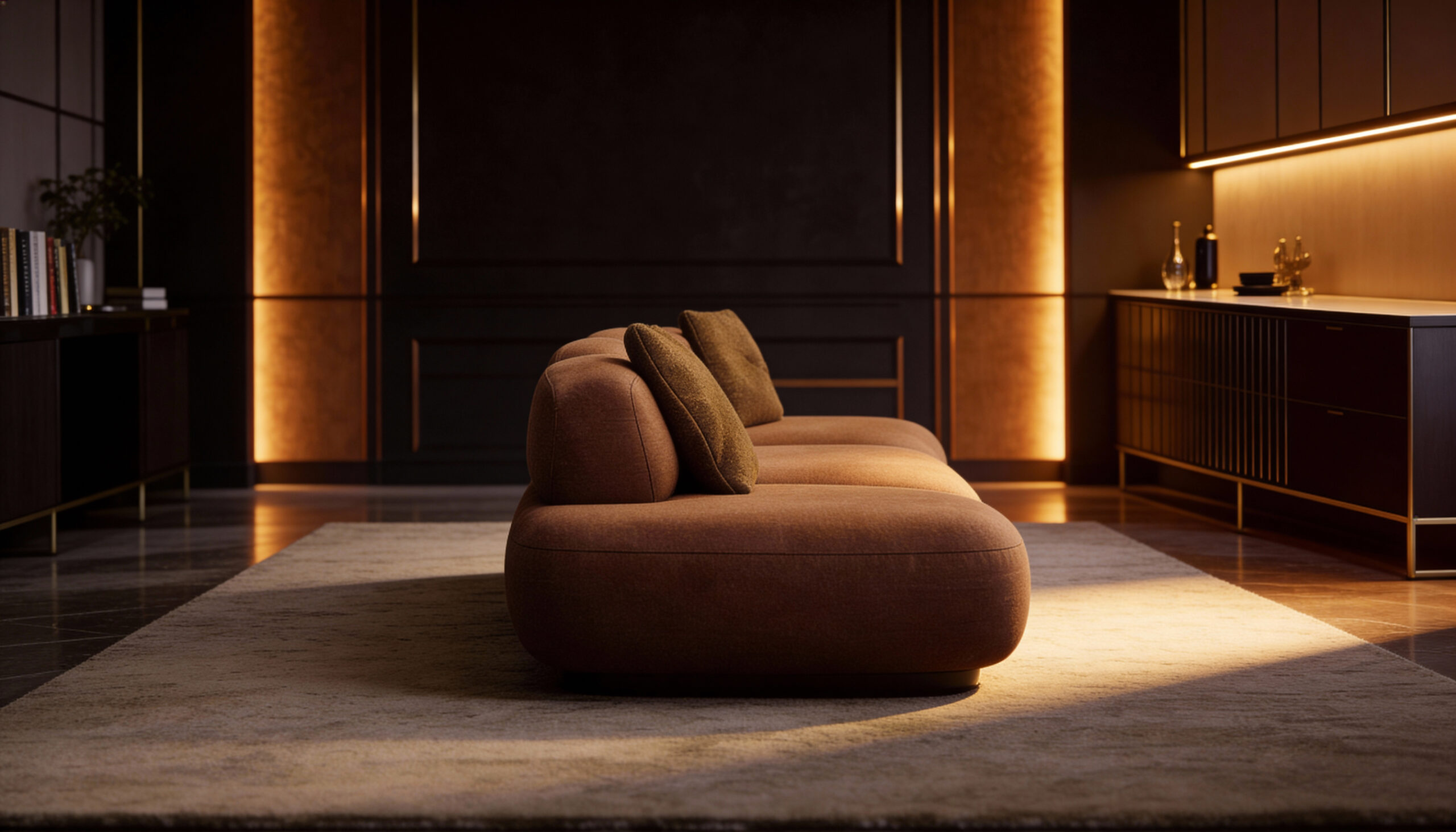 Rooted in the idea of balance and completeness, Trisadanam is a refined expression of structured comfort. Designed as a generous three-seater, its linear form emphasizes symmetry and proportion. Clean lines and measured detailing create a sense of visual stability. The evenly balanced seating ensures lasting comfort for formal and composed living spaces.