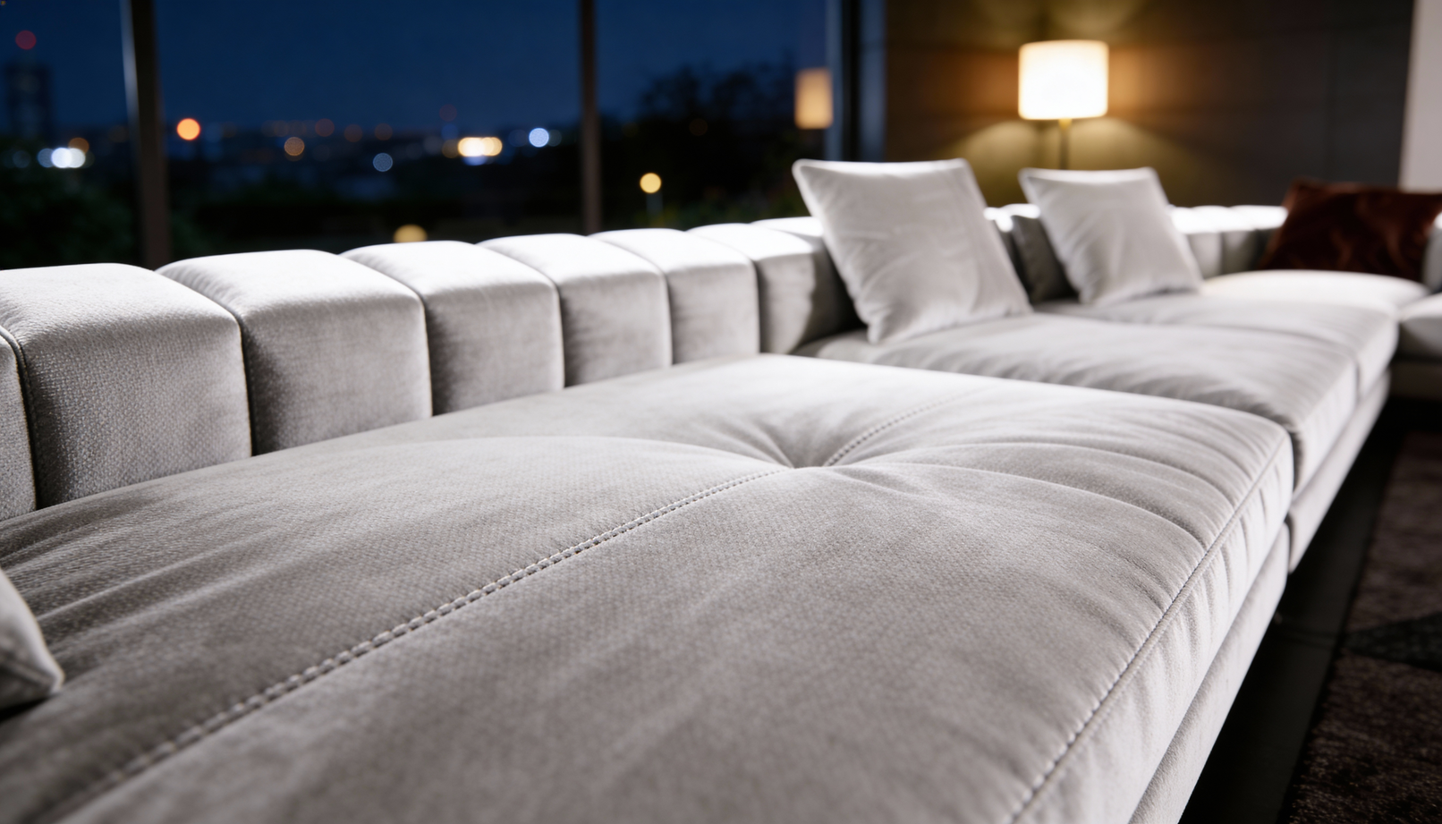 The sofas are engineered using a layered construction system with a secure Velcro-based mechanism, allowing flexibility and ease of maintenance.